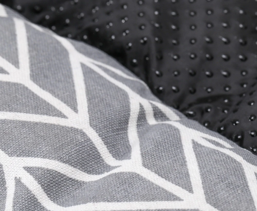 - Dog bed bottom is comprised of polyester and anti-skid rubber.