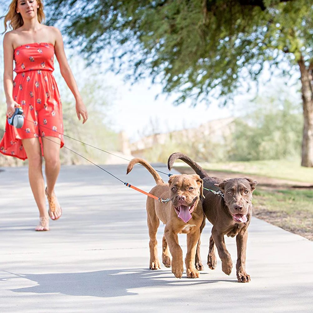 Wigzi's Dual Doggie Leash will not tangle and allows you to walk two dogs at the same time while maintaining individual control of each one.