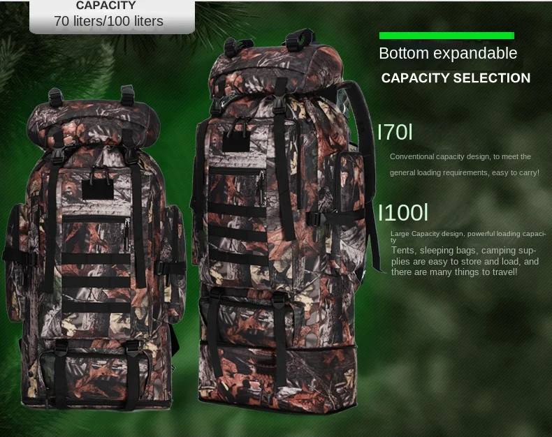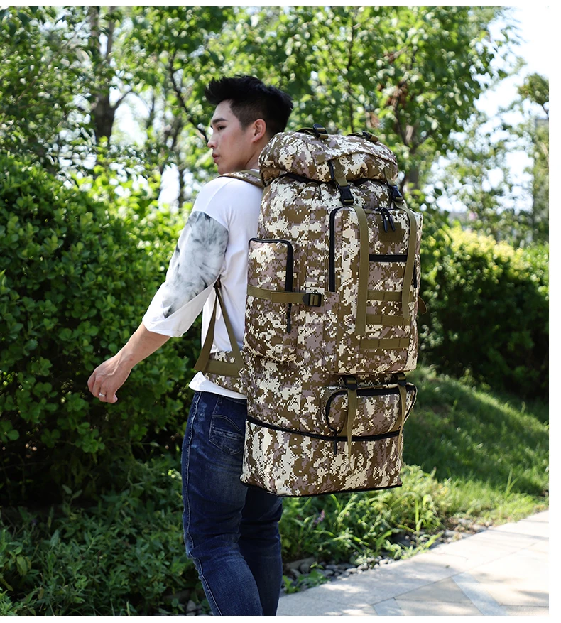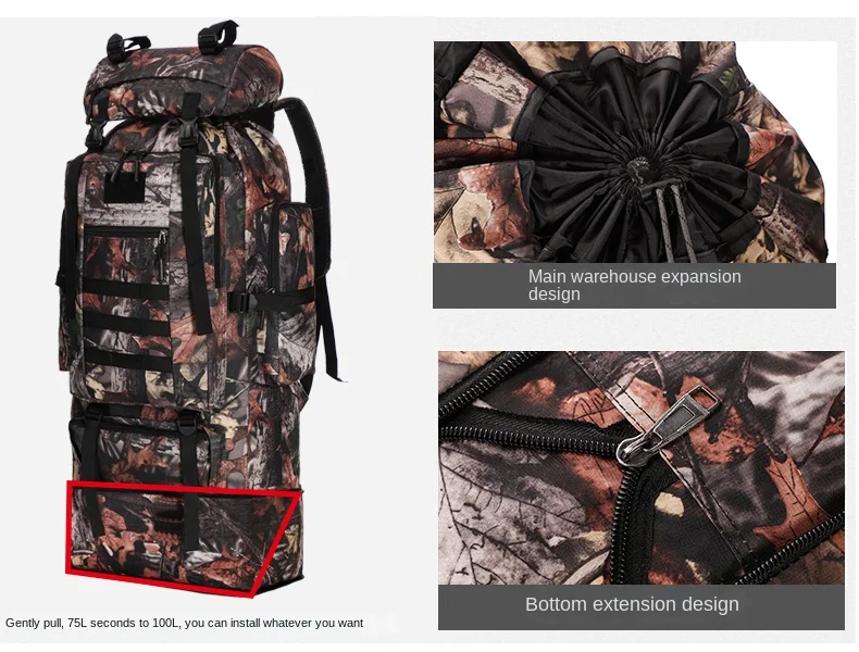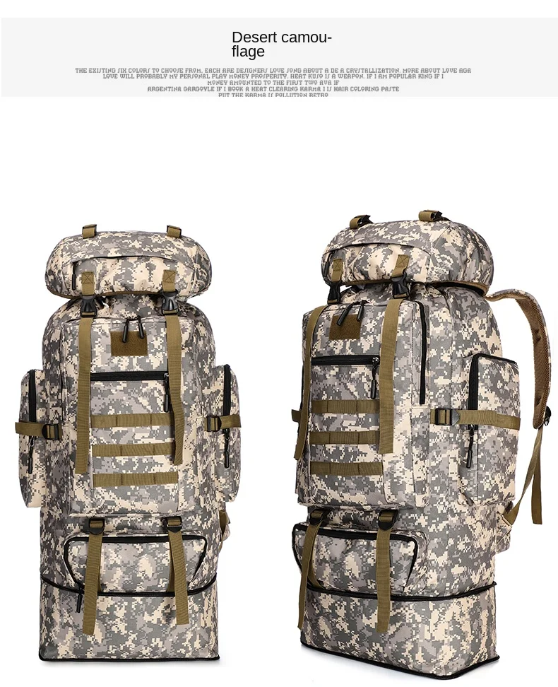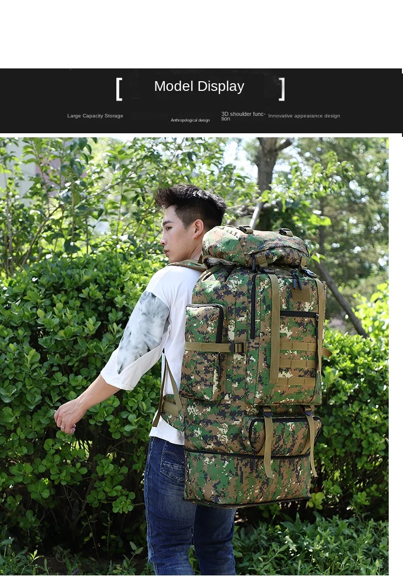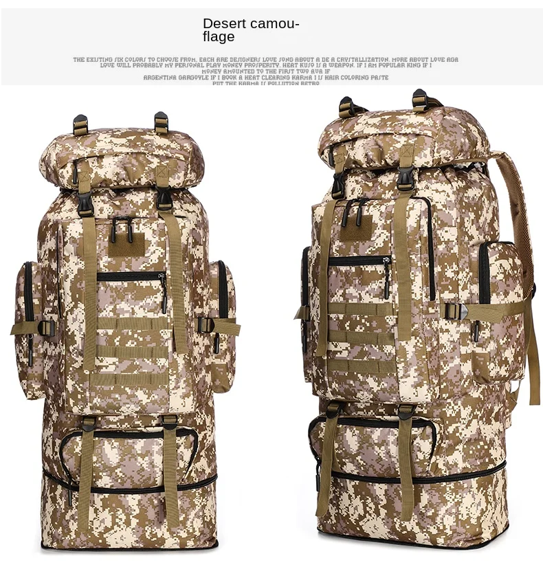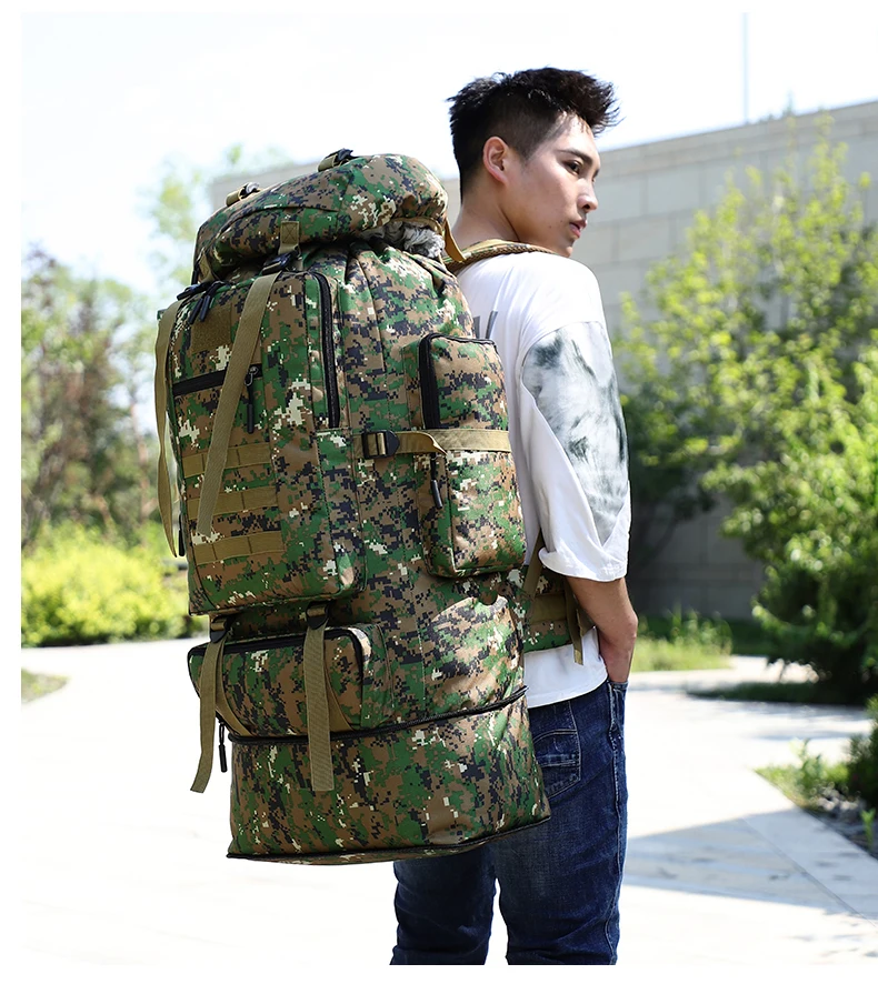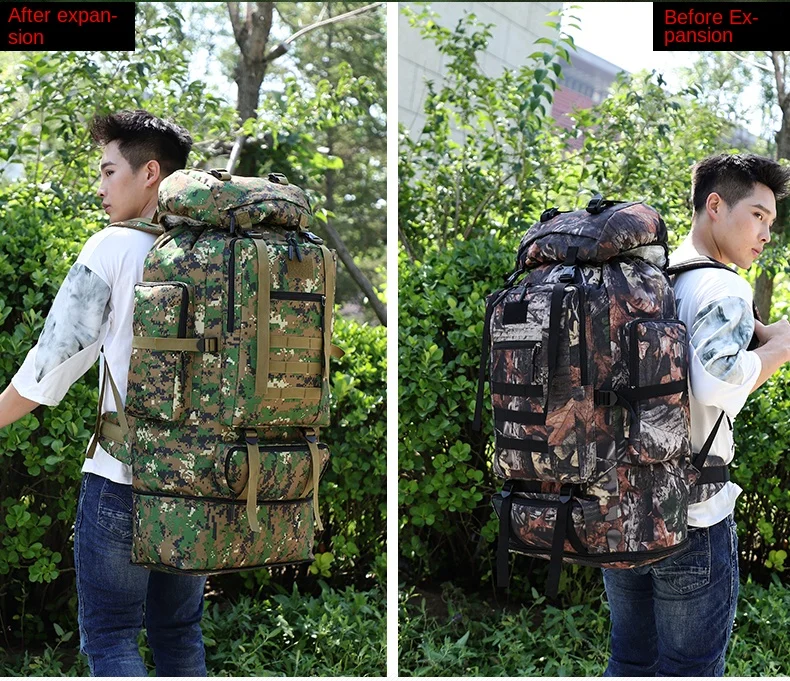 Camouflage Tactical 80L-100L large-capacity expandable camping backpack