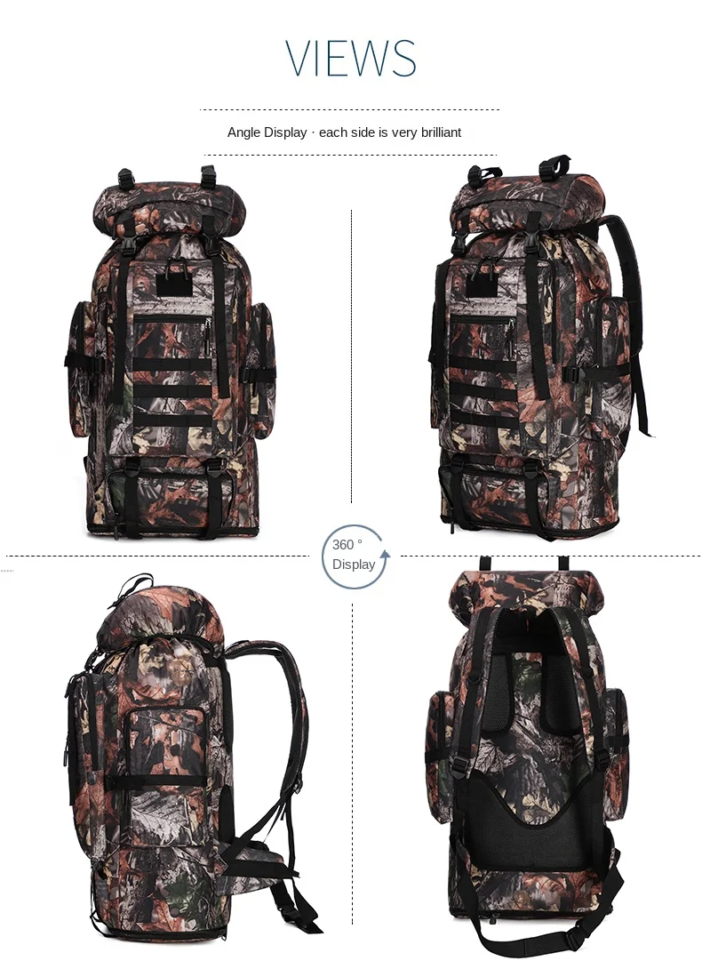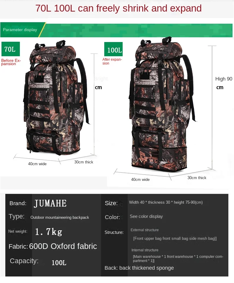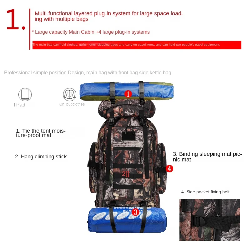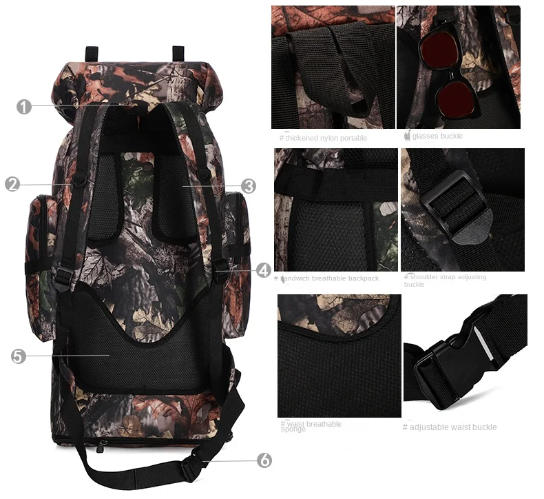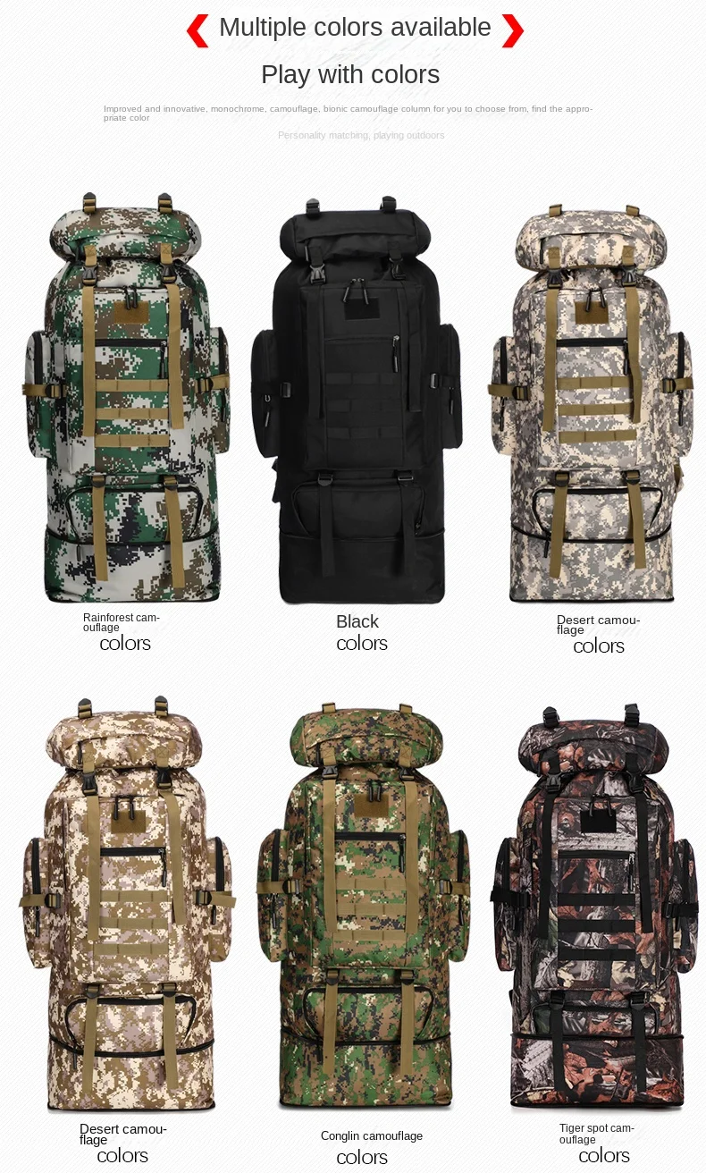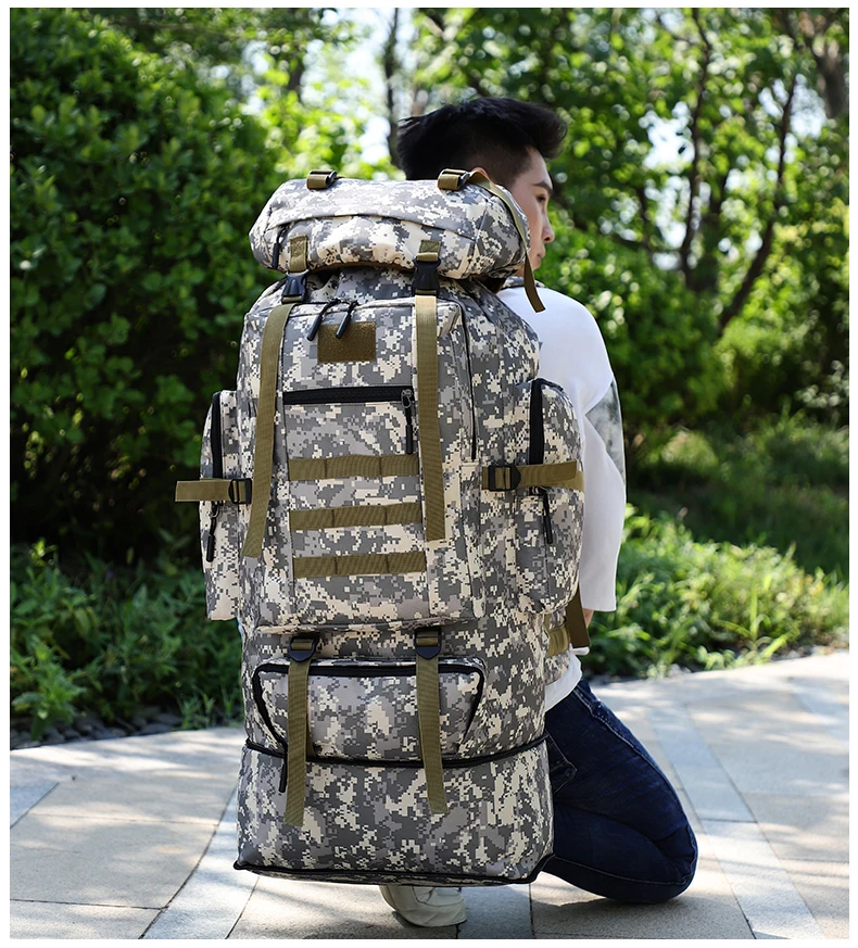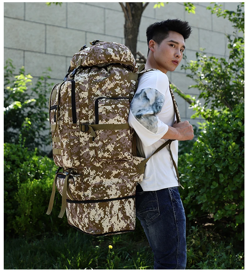 Camouflage Tactical 80L-100L large-capacity expandable camping backpack