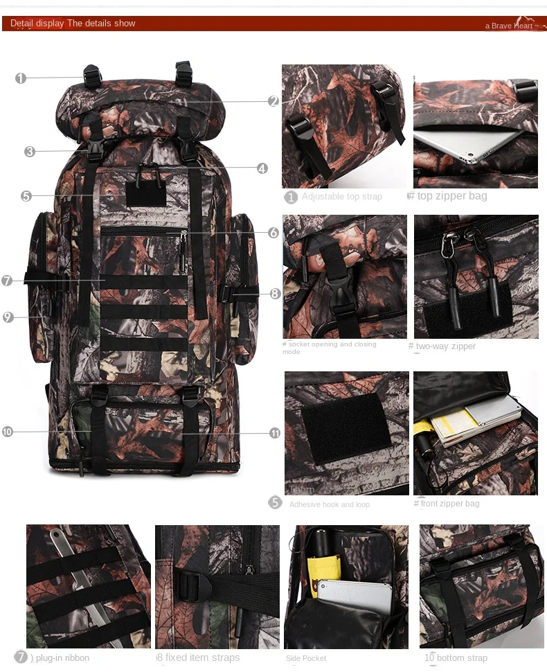 Be the first to review “Camouflage Tactical 80L-100L large-capacity expandable camping backpack” Cancel reply
