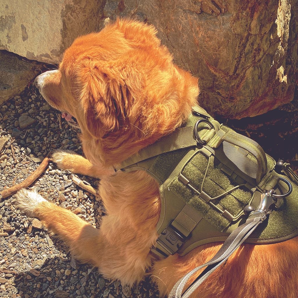 - Tactical dog harness ready for camping, hiking, and overlanding.