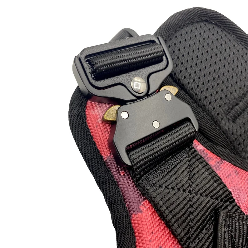 - Materials: nylon, mesh, metal, pink, camouflage, reinforced, handle, metal buckles, heavy duty, camo, tactical, adjustable, hook and loop