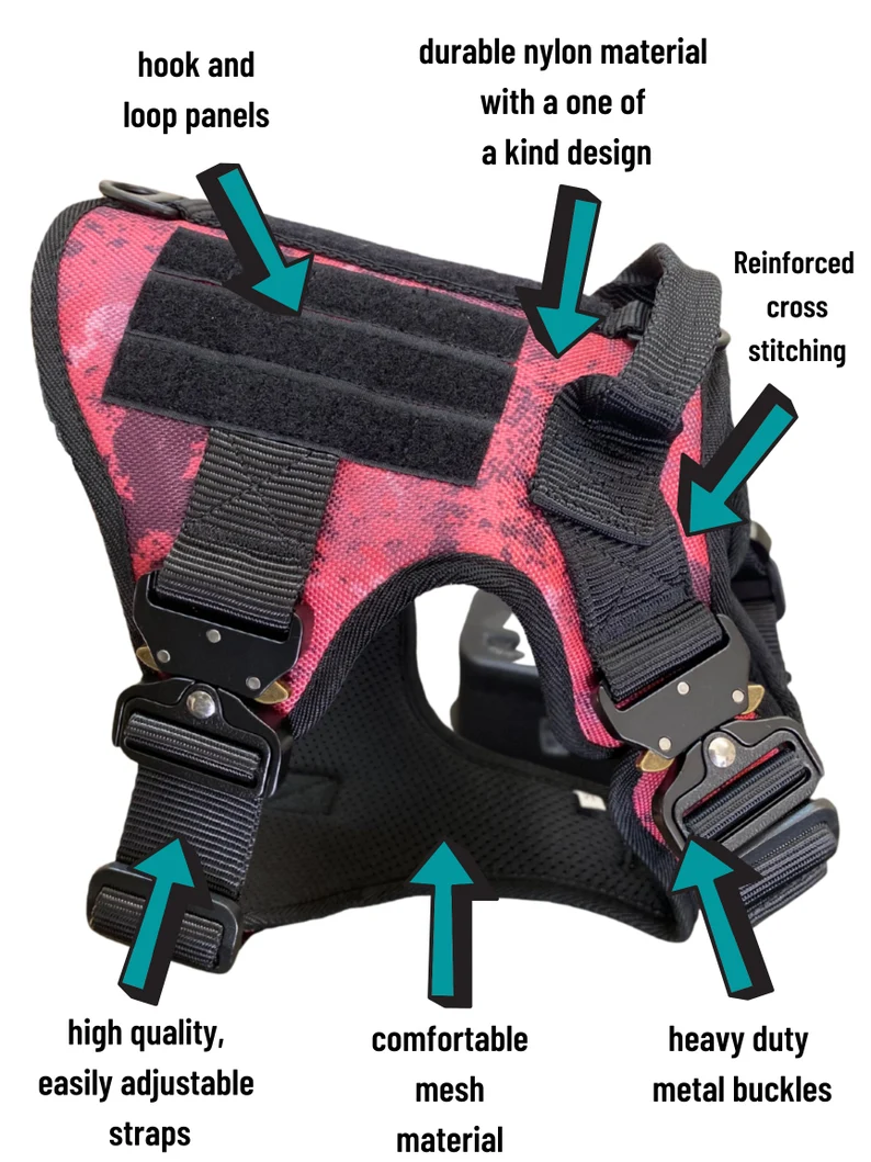 Tactical camouflage pink dog vest, No pull adjustable harness
