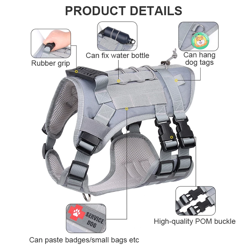 Tactical Dog Harness No Pull Adjustable Pet Training Vest Safety Vehicular Lead Walking & Running